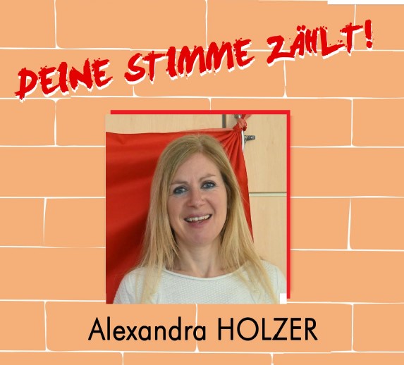 Le scuole di lingua tedesca dell' Alto Adige hanno diritto a un/una rappresentante. Noi abbiamo deciso di presentare una lista unitaria all'insegna del motto "Für mehr Mitbestimmung - Democrazia e partecipazione" insieme alla CISL Scuola e al SSG ASGB e vi chiediamo di dare il vostro voto di preferenza alla nostra candidata Alexandra Holzer.