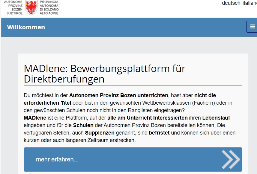 Ab dem 26. Juli 2024 wird der Server für Direktberufungen blikk.it/Supplenz mit der Plattform MADlene (MAD - steht für "messa a disposizione") ersetzt.